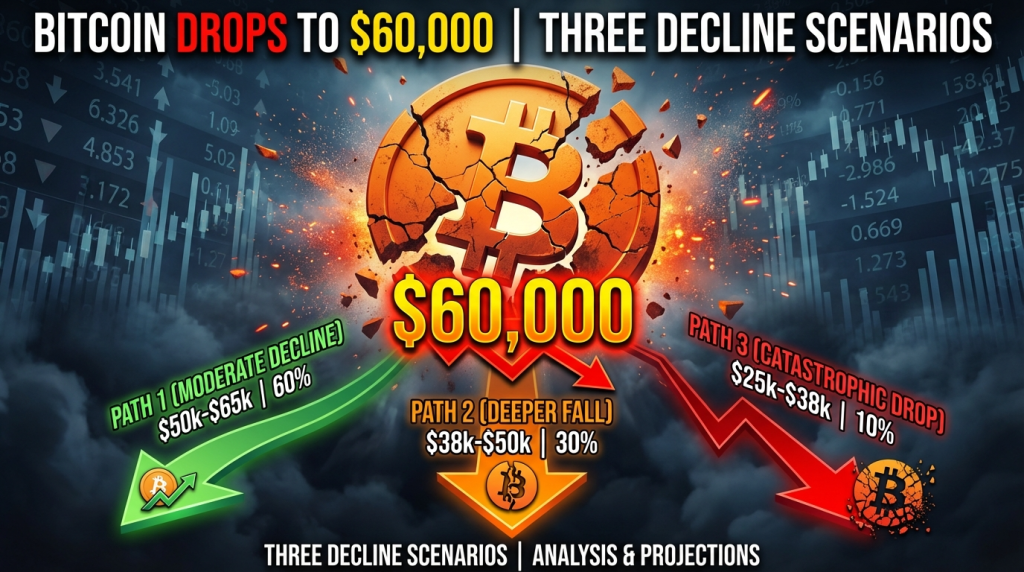ビットコイン6万ドルに下落|3つの下落シナリオ