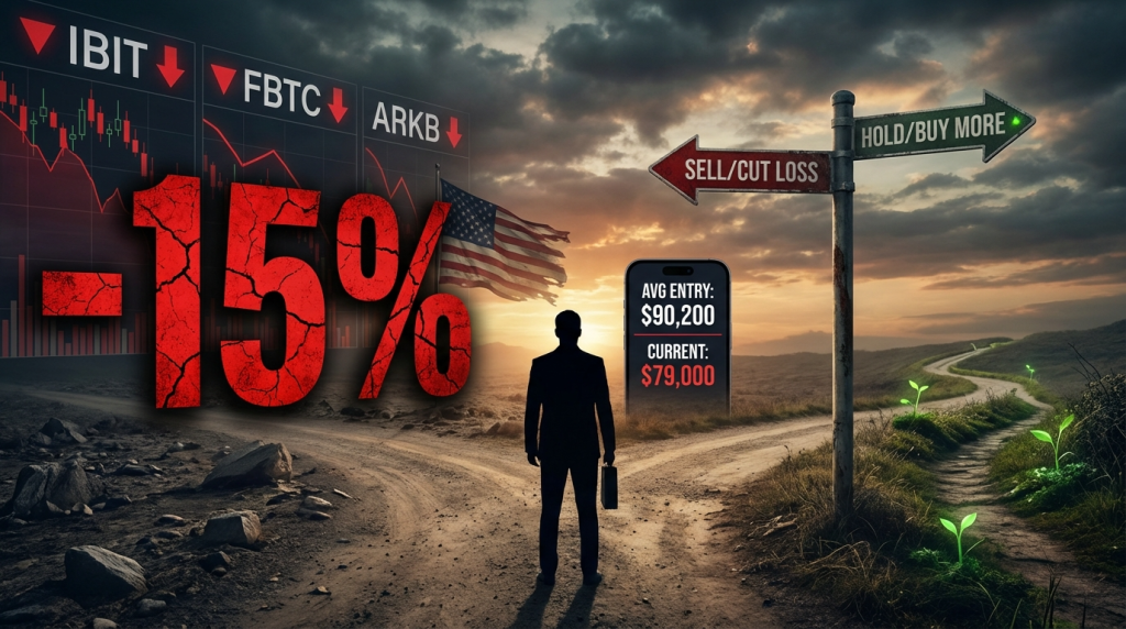 米国ビットコインETF投資家、平均15%の含み損で岐路に立つ