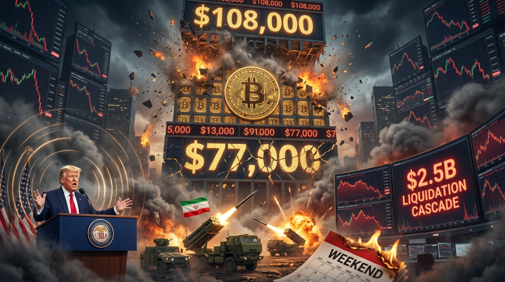 ビットコイン、7万7,000ドルへ大暴落、1月ピークから26%下落 – トランプ新FRB議長指名と対イラン最後通告が引き金